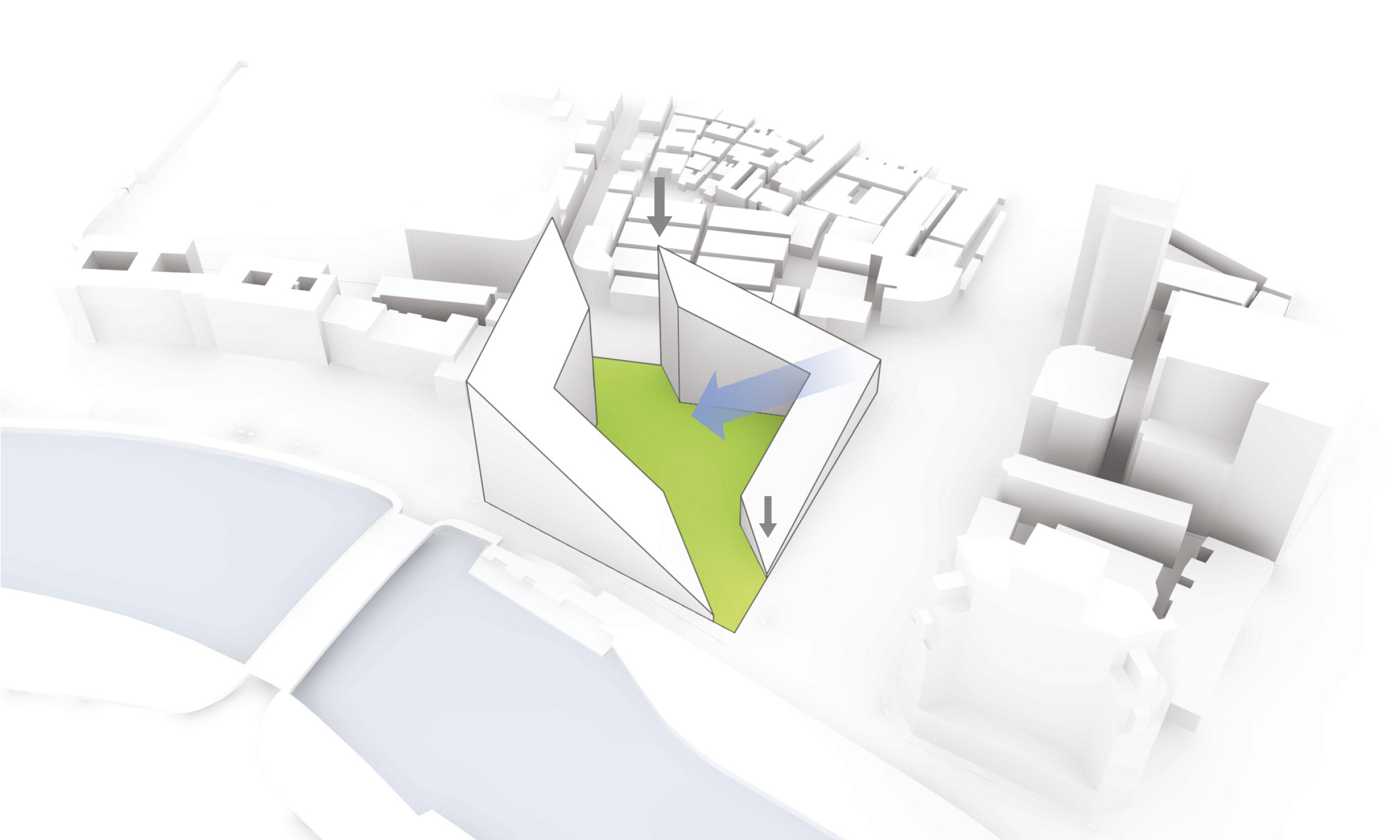 frames the landmark Broadway Mansion rather than overshadowing it; achieves maximal view and light exposure for the apartments